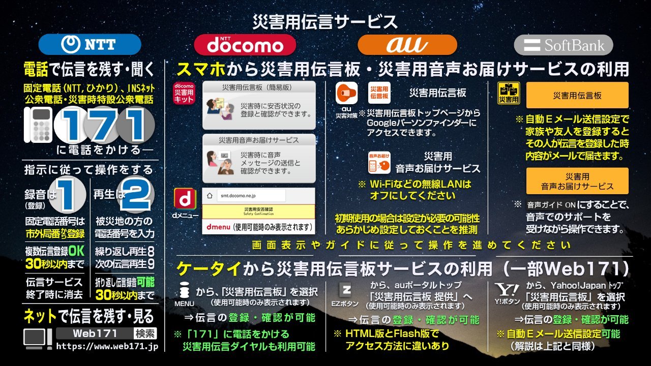 【災害用伝言板】NTT Web171 (Rakuten・Povo等)